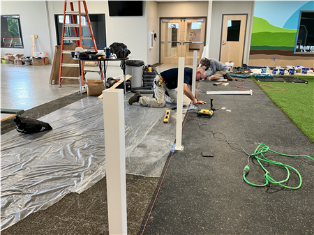 Photos of the start-to-finish progress and dedication of the 2024 Rotary District Grant Project at the Sunflower Discovery Center